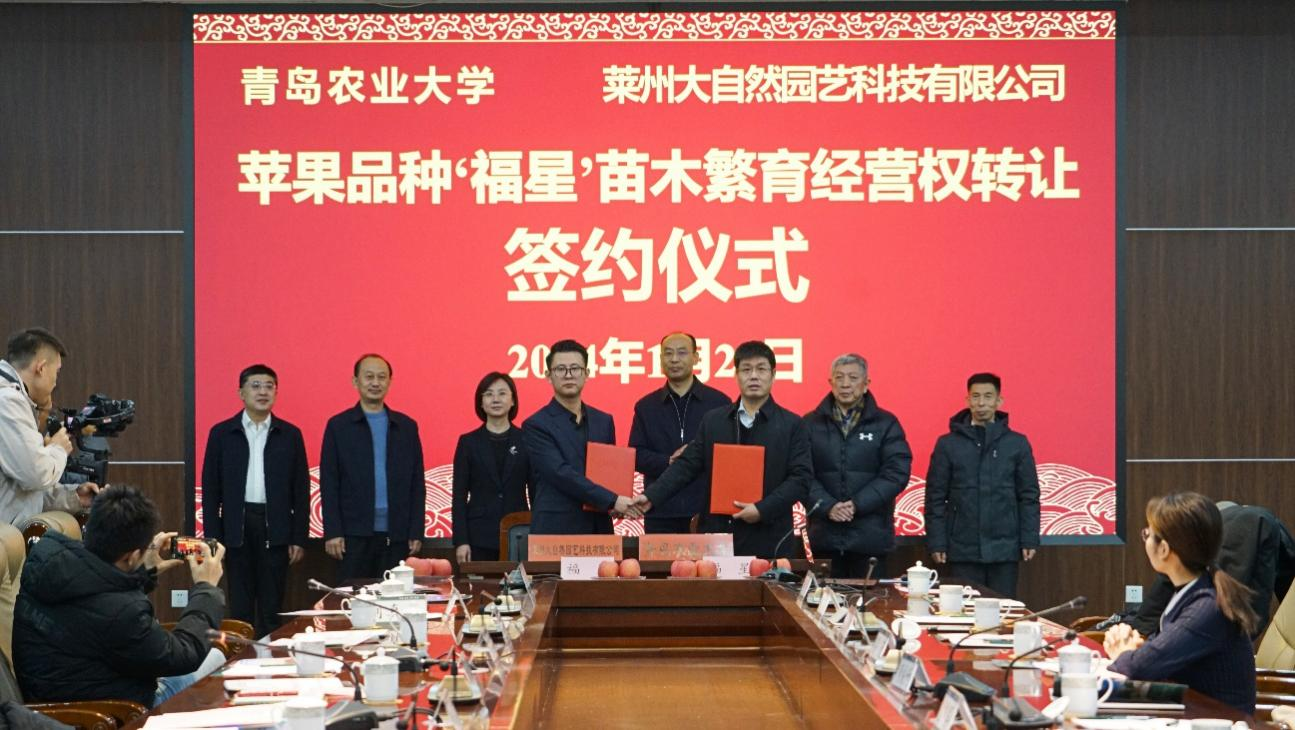 受让方莱州大自然园艺科技有限公司是农业农村部苹果育繁推一体化试点单位、农业农村部山东联建国家级果树无病毒苗木繁育基地、山东省高新技术企业。公司总经理宋继峰表示,‘福星’苗木繁育经营权的转让,对公司探索现代农业发展之路、推动苹果品种国产化和苗木品牌化、服务国家战略具有重要意义,将有力助推我省乃至全国苹果品种更新、结构调整和产业振兴。