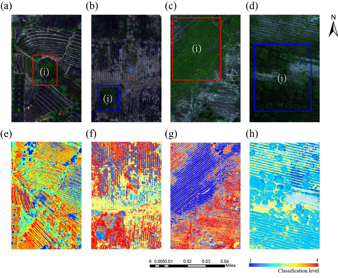 基于处理后的数据,团队构建了多种分类模型。其中,多源数据融合优于单源数据,MS + TIR实现最佳性能(准确率:0.983,精确度:0.967-1.000,召回率:0.967-1.000,F1分数:0.967-1.000)。RSDCM模型(准确度:0.983)比其他四个模型表现更好,可以准确地划分茶园干旱胁迫等级。这一成果不仅显著提升了茶园干旱分类监测的效率和准确性,可为茶园管理决策提供有价值的指导和数据支持。