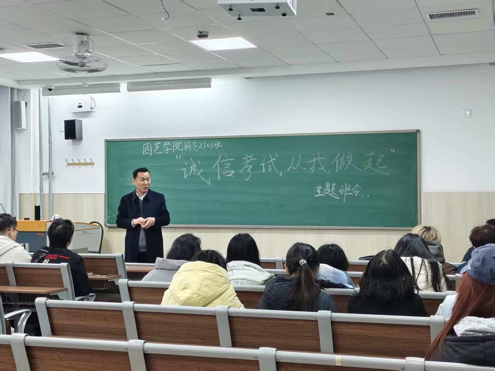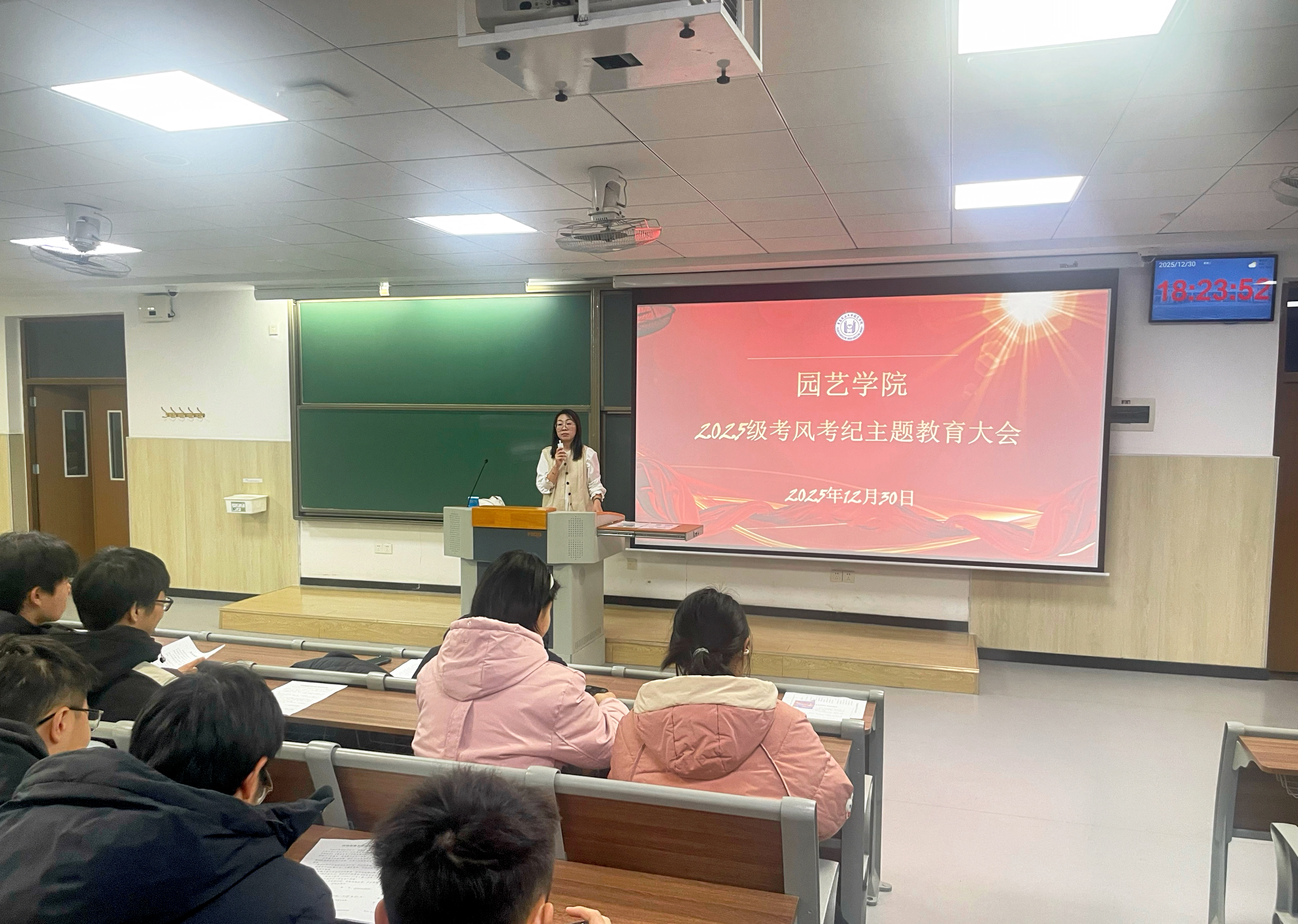 12月30日,学院在平度校区教学楼召开2025级全体学生考风考纪主题教育大会,2025级辅导员刘园主讲。会上,刘园围绕考场规则、违纪作弊类型、历年违纪情况等七个方面,结合学校近年考试违纪作弊典型案例,系统阐释诚信应考的重要意义。各班班主任聚焦“诚信应考”主题召开专题班会,带领学生集体学习《365英国上市学生考试违纪及作弊行为的处理规定》《学生手册》中关于考试纪律的具体条款,观看诚信考试主题教育宣传片,深化教育成效。此外,学院面向2025级学生发起“清朗考场”志愿服务活动,组织学生对教学楼内考场进行全面清扫整理,确保考场以“零痕迹”状态迎接考试。志愿者表示,能为营造公平公正的考试环境贡献力量,感到十分有意义,这既是对诚信考试理念的践行,也是新时代大学生责任感的体现。